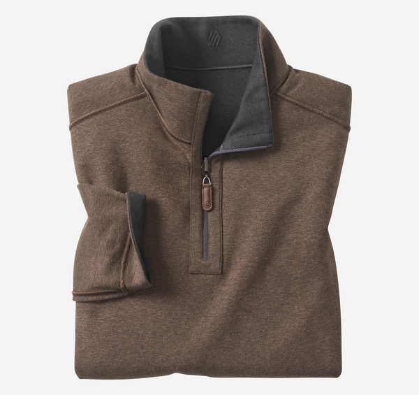 Johnston & Murphy Icon Reversible Solid Quarter-Zip, Charcoal/Brown